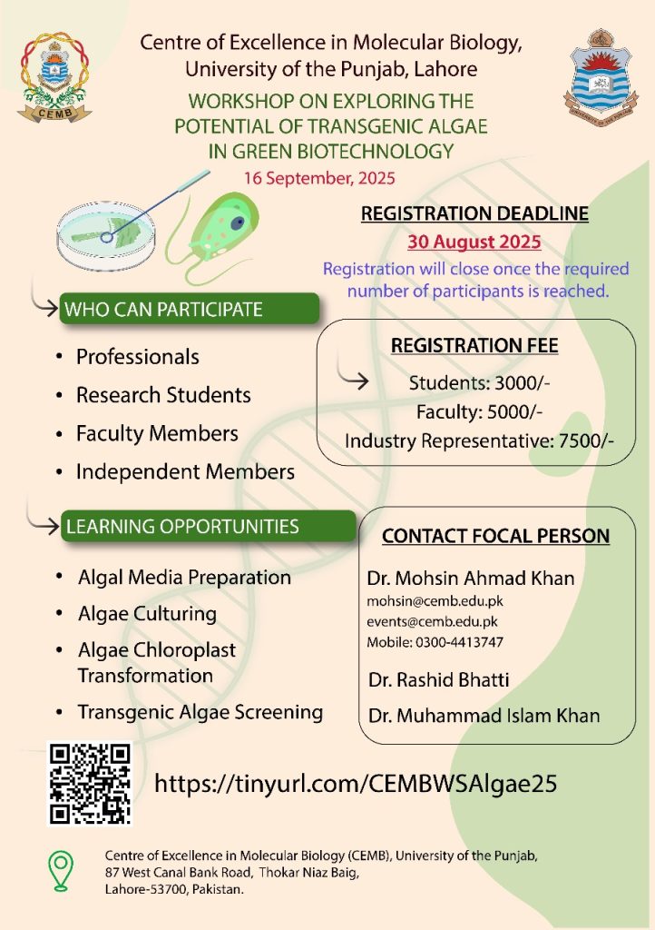 Workshop on exploring the potential of transgenic algae in Green Biotechnology