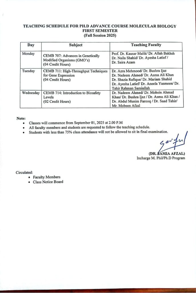 All the M.Phil and PhD students of session 2025 are invited to attend orientation session on Monday 8th September 2025, 10:30AM at the lecture hall of CEMB.