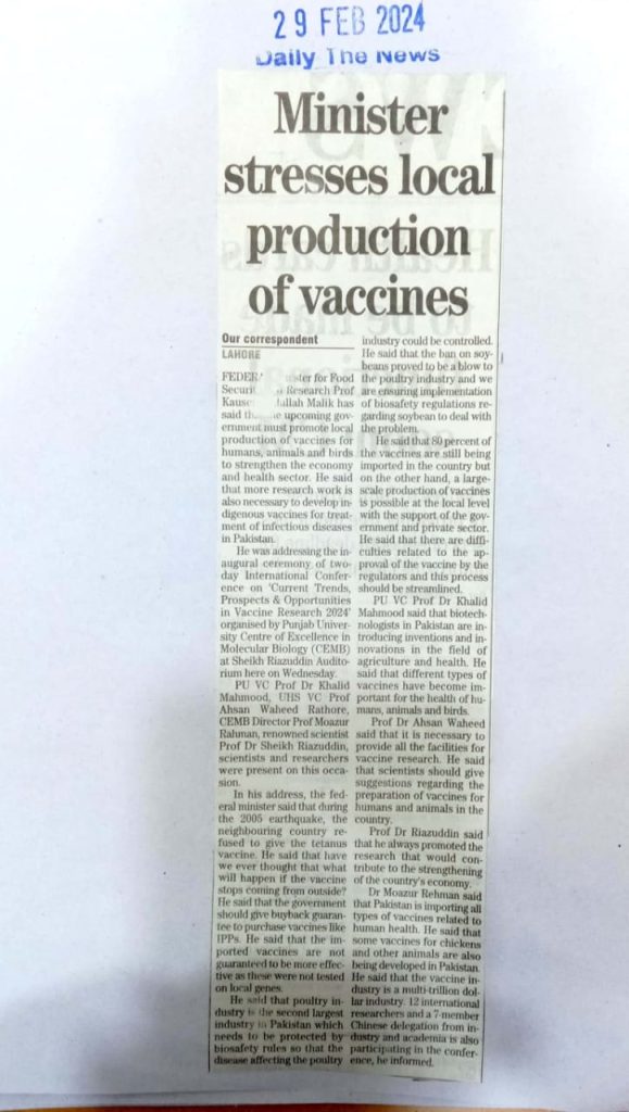 CEMB News Paper - International Vaccine Conference 2024
